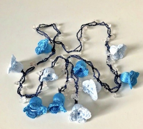 Short Crochet Necklace Boho Bracelet Blue Beaded Crochet Belt Flower Pendant Ebay