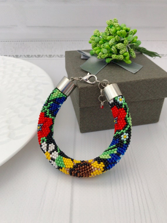 Seed Bead Bracelet Rose Flower Bracelet Bead Crochet Bracelet Rose Print Floral Print Bead Crochet Rope Beaded Bracelet 2558620 Weddbook
